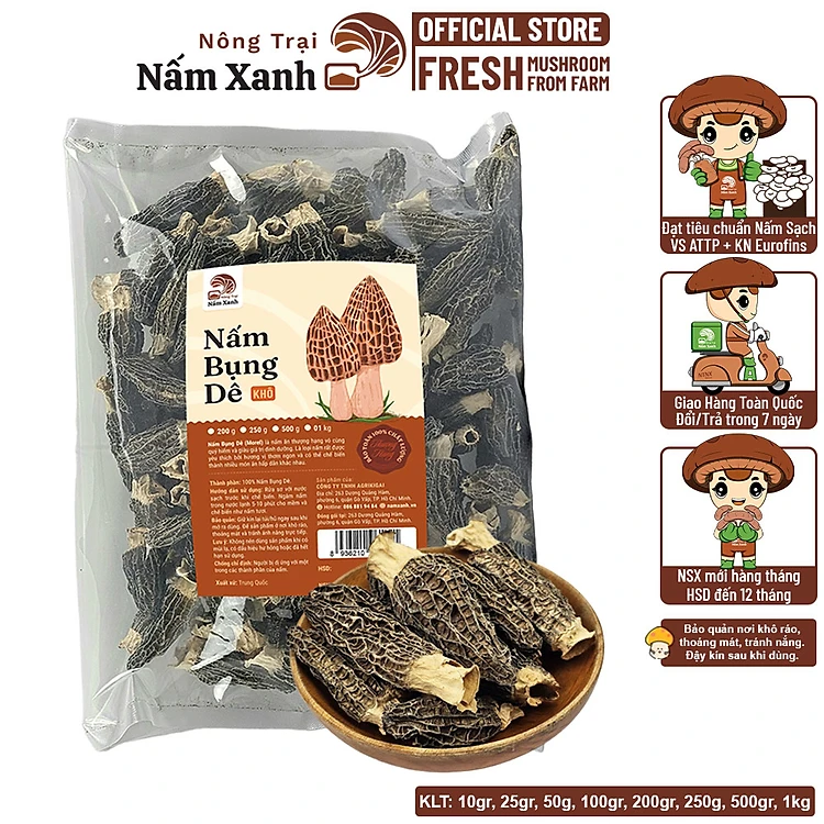 Nấm Bụng Dê / Nấm Morel Khô (1Kg) Thượng Hạng - Nông Trại Nấm Xanh