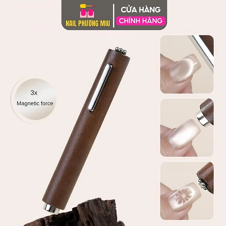 Nam Châm Trụ 3in1 Cán Gỗ Vàng Đẩy Hút Sơn Mắt Mèo Siêu Sáng Làm Nail, Nam Châm cây Mắt Mèo Trụ Dày Siêu Từ Tính