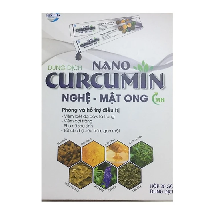 THÀNH PHẦN - Nano curcumin: 100mg - Tinh nghệ: 500mg - Tam thất: 300mg - Cao bán chi liên: 50mg - Trà dây: 500mg - Mật ong: 300mg - Cao xạ đen: 50mg - Mộc hương: 200mg - B-Glucan: 100mg - Piperin: 0,3mg - Magnesium hydroxide: 250mg CÔNG DỤNG - Hỗ trợ làm giảm các triệu chứng do viêm loét dạ dày, tá tràng, đại tràng. - Giúp tăng sức đề kháng, hỗ trợ giảm tác dụng phụ của hó trị, xạ trị. - Hỗ trợ phục hồi sức khoẻ cho phụ nữ sau sinh, giúp nhanh liền sẹo, nhanh lành vết thương. ĐỐI TƯỢNG SỬ DỤNG: - Người bị viêm loét dạ dày, tá tràng, đại tràng. - Người muốn tăng cường sức đề kháng, người sau khi hoá trị, xạ trị. - Phụ nữ sau sinh, người đang phục hồi sau phẫu thuật. CÁCH DÙNG Uống trước bữa ăn 30 phút hoặc sau khi ăn 1 giờ. - Người lớn và trẻ em trên 12 tuổi: Ngày uống 3 lần, mỗi lần 1 gói. - Trẻ em 6 đến 12 tuổi: Ngày uống 2 lần, mỗi lần 1 gói. Lưu ý: - Phụ nữ có thai và trẻ em dưới 6 tuổi: sử dụng theo sự hướng dẫn của thầy thuốc. - Không dùng cho người mẫn cảm với bất kỳ thành phần nào của thực phẩm. - Thực phẩm này không phải là thuốc và không có tác dụng thay thế thuốc chữa bệnh.
