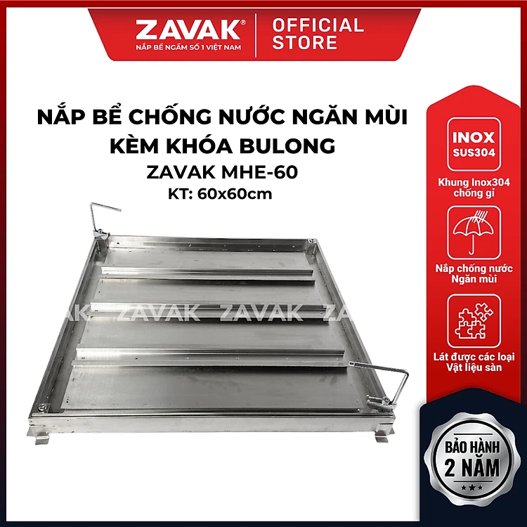 Nắp bể ngầm Zavak MHE-60 KT60x60cm, chống nước, ngăn mùi, lát gạch 1.2cm, chịu tải xe 1.2tấn, inox 304