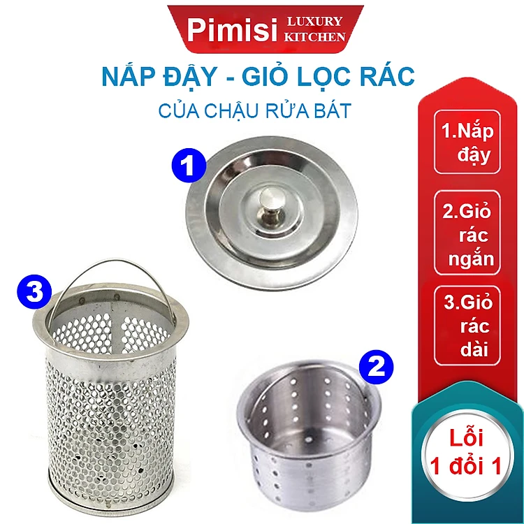 Nắp đậy - giỏ lọc rác inox 304 của chậu rửa bát chén Pimisi | hàng chính hãng