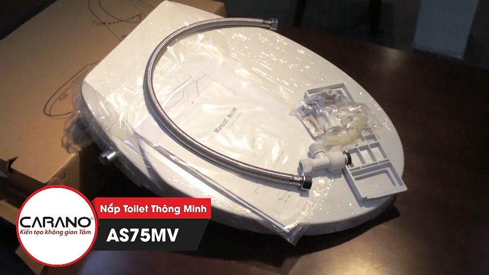 Trọn bộ theo hộp sản phẩm nắp toilet thông minh Carano Malaysia model AS75MV gồm có: