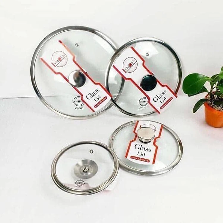 Nắp vung nồi chảo kính cường lực viền inox Lyncen xuất Nhật size 16/18/20/22/24/26/28/30cm
