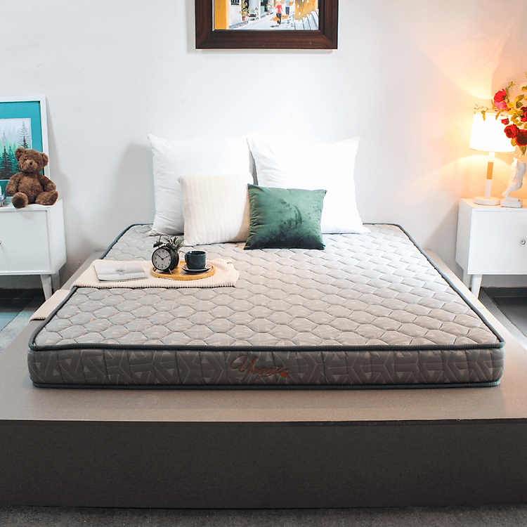 - Hoa văn trên vỏ nệm Yogaz được thiết kế tinh tế, gam màu xám sang trọng, trang nhã, phù hợp với mọi loại không gian phòng ngủ giúp bạn tự do thiết kế phòng ngủ theo phong cách của riêng mình.