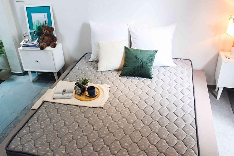 - Nệm với bên trong là cao su nhân tạo nguyên khối với độ đàn hồi chuẩn, nâng đỡ cơ thể, dễ dàng đi vào giấc ngủ. Cấu trúc nệm biến đổi theo hình dáng cơ thể, giúp gia tăng diện tích tiếp xúc giữa nệm và cơ thể, phân bố lực đồng đều, hạn chế tình trạng đau lưng, mỏi vai gáy sau khi ngủ dậy.