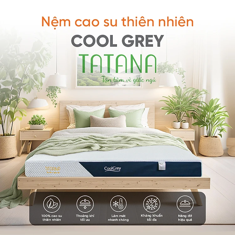 Nệm cao su thiên nhiên than hoạt tính Tatana Cool Grey, Kháng khuẩn khử mùi, nâng đỡ cơ thể, hỗ trợ giảm đau cột sống - Bảo hành 10 năm .