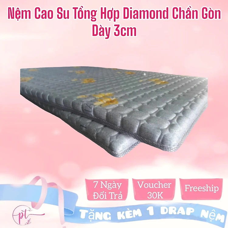 Nệm Cao Su Tổng Hợp Chần Gòn Diamond 3cm Đủ Size ( Giao Màu Ngẫu Nhiên ) Tặng Kèm Drap Nệm