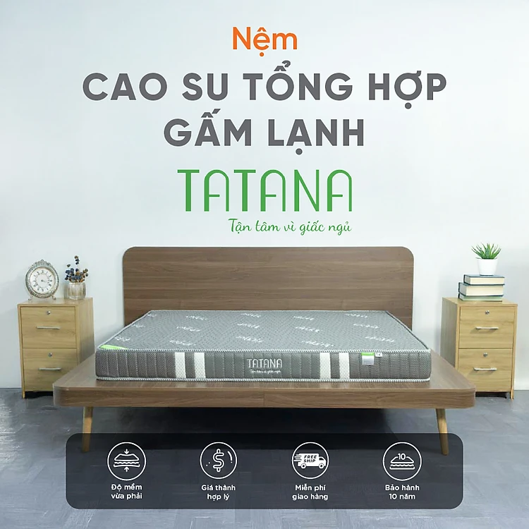 Nệm Cao Su Tổng Hợp Vải Gấm Lạnh Tatana Dạng Thẳng, Nâng Đỡ Cơ Thể, Êm Ái , Bảo Hành 10 Năm