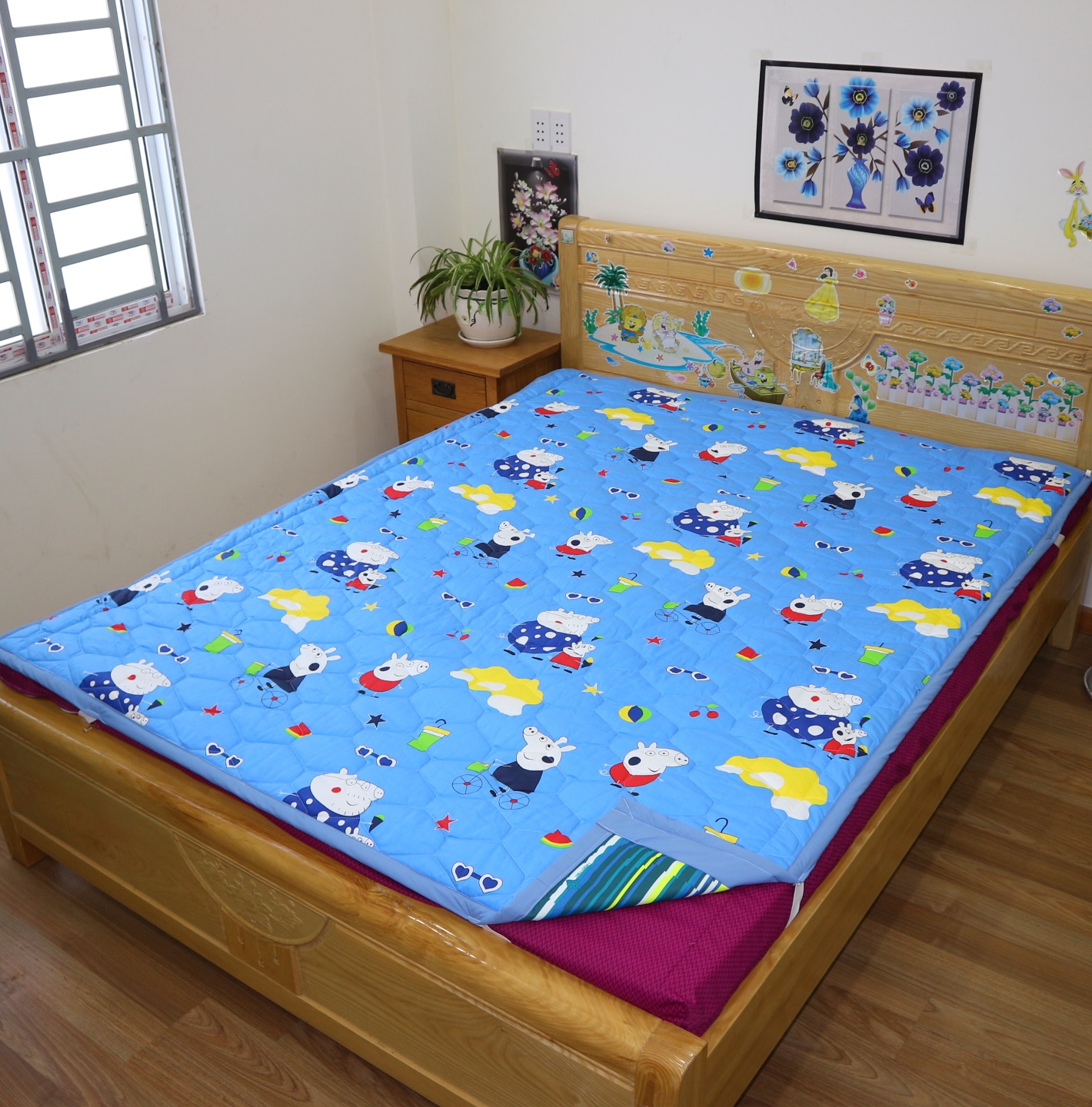 Nệm Chống Thấm HOÀNG THIÊN HÀ - Cho Bé BỎ BỈM, Cho Bé ĐI HỌC, TRẢI SÀN, TRẢI GIƯỜNG - 100% COTTON thoáng mát, GIẶT MÁY, nhanh khô - Mẫu Heo Hoạt Hình Màu Xanh