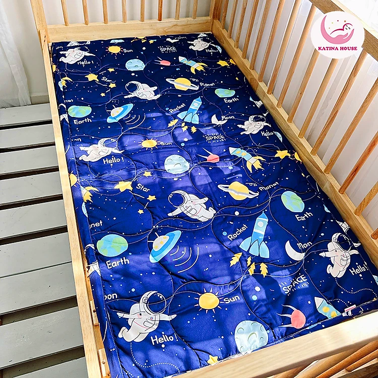 Nệm đi học cho bé tiểu học, trung học 80x150cm Katina House, vải Cotton Satin Hàn Quốc mềm mát, thấm hút tốt