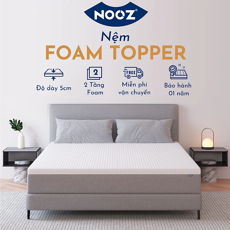 Nệm Foam Topper NOOZ Home Goods với Tiêu Chuẩn CertiPUR-US Ruột Đệm Cao Su Non Hỗ Trợ Nâng Đỡ Vỏ Đệm Tencel