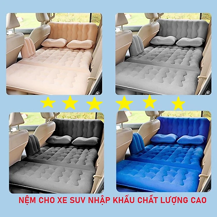 Nệm hơi ô tô SUV, đệm hơi du lịch xe 4 chỗ, 5 chỗ, 7 chỗ, màu sắc đa dạng, trang nhã (4 màu) - TẶNG kèm bơm điện 12V