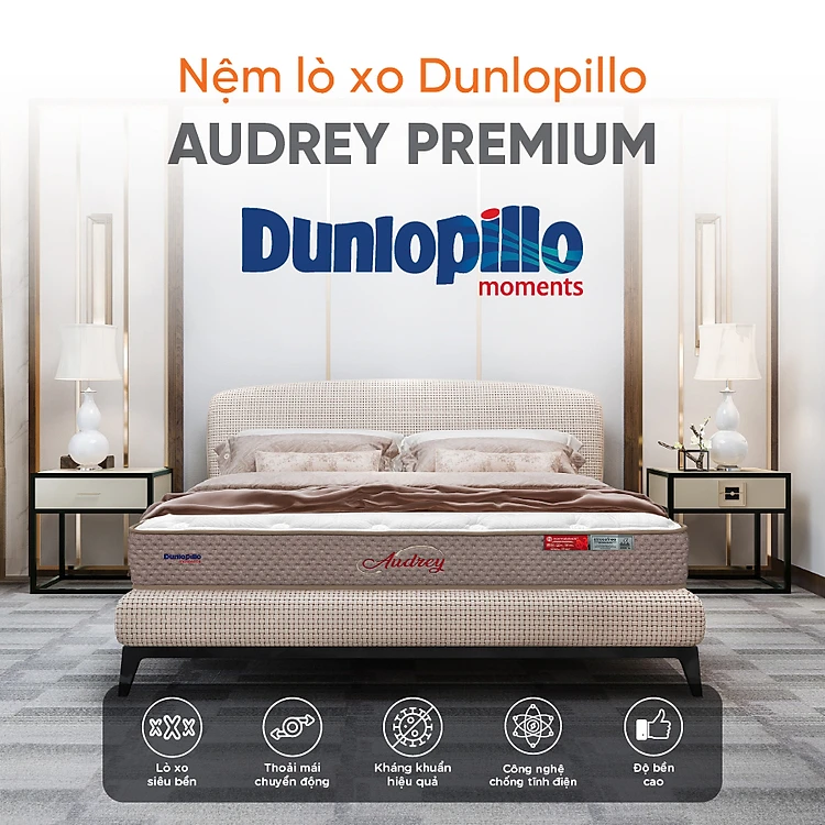 Nệm lò xo túi một sợi Dunlopillo Audrey Premium, nâng đỡ tối ưu,thiết kế sang trọng - Độ cao 25cm