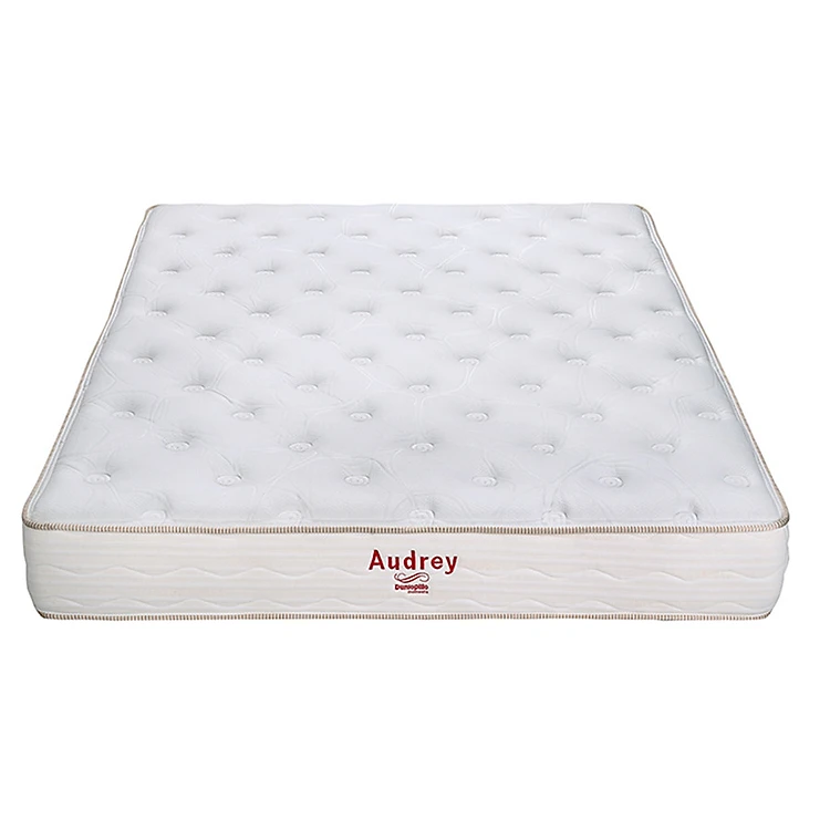 Dunlopillo Audrey là nệm lò xo túi 2 viền, mặt chằn bông kết hợp với vải lụa siêu mềm tạo cảm giác êm ái tuyệt vời. Nệm có khung hộp định hình bao quanh giúp tấm nệm thêm chắc chắn và tăng độ bền cho hệ thống lò xo.