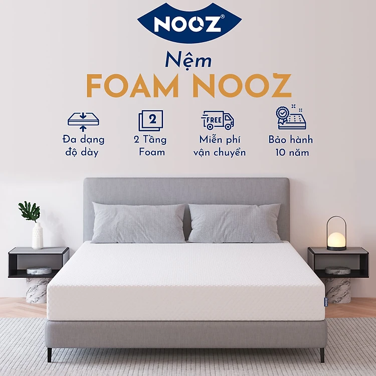 Nệm Foam NOOZ Home Goods Tiêu Chuẩn CertiPUR-US Với Hai Tầng Foam Nâng Đỡ Ruột Đệm Cao Su Non Vỏ Nệm Tencel