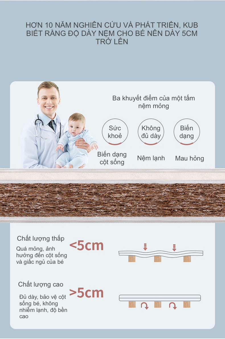Nệm Sơ Dừa Nằm Cũi Cho Bé - Nhiều Kích Thước, Kháng Khuẩn, Thoáng Mát, Sử Dụng Bốn Mùa