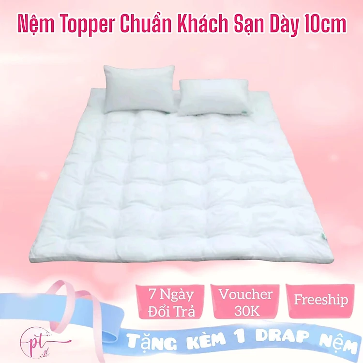 Nệm Topper, Tấm Topper Làm Mềm Nệm Tiêu Chuẩn Khách Sạn Cao Cấp 5 Sao Dày 10cm Tặng Kèm Drap Nệm