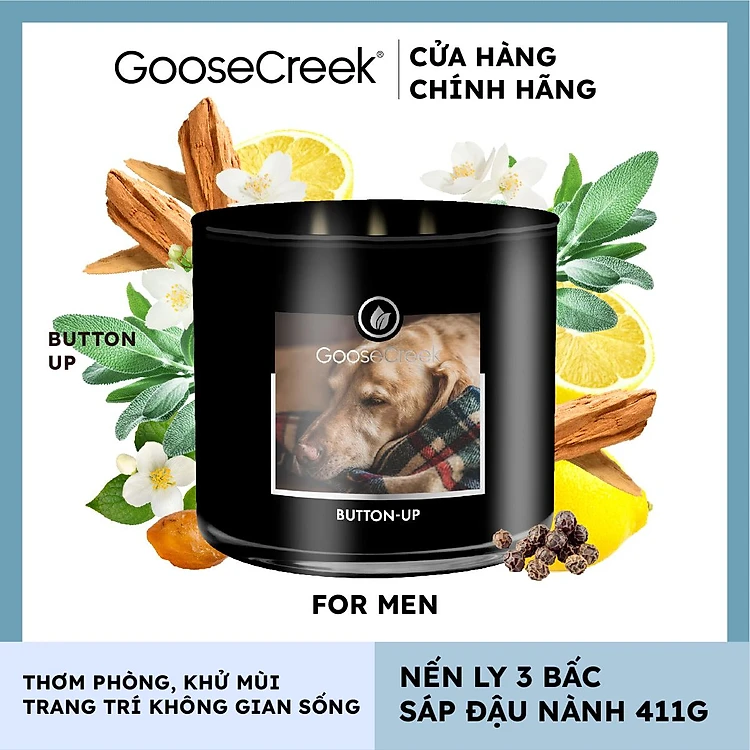 Nến ly 3 bấc sáp đậu nành For Men Goose Creek (411g) - Button Up