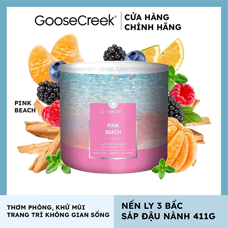 Nến ly 3 bấc sáp đậu nành Goose Creek (411g) - Pink Beach