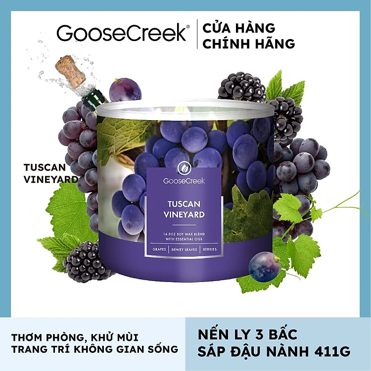 Nến ly 3 bấc sáp đậu nành Goose Creek (411g) - Tuscan Vineyard