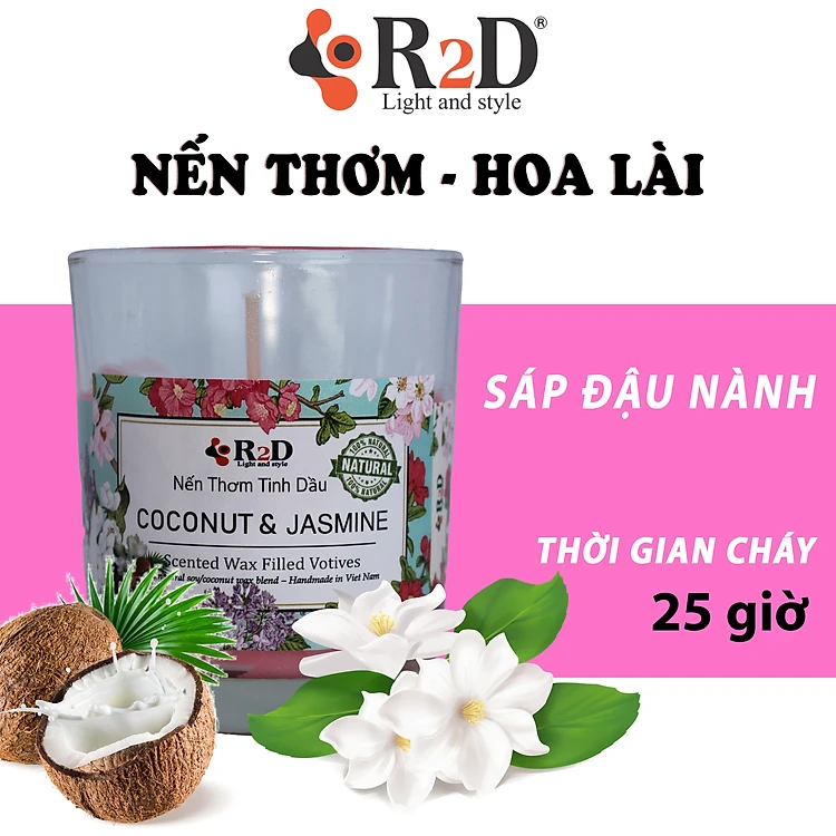Nến thơm hoa Lài Coconut Jasmine R2D Thư giãn tinh thần - khử mùi hiệu quả