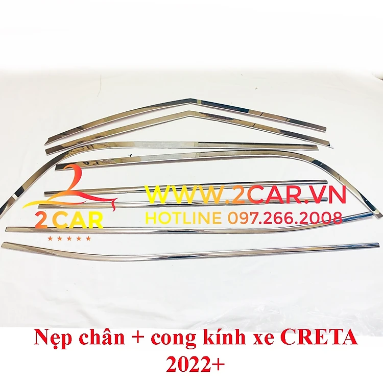 Nẹp viền chân kính, Nẹp cong kính xe Hyundai Creta 2022- 2023 Hàng inox cao cấp