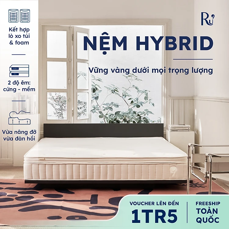 Nệm Foam Lò Xo Hybrid Ru9 25cm Cao Cấp | Mềm Mại, Đàn Hồi , Nâng Đỡ | Lò Xo Túi Ngăn Cách Chuyển Động | 4 Kích Thước