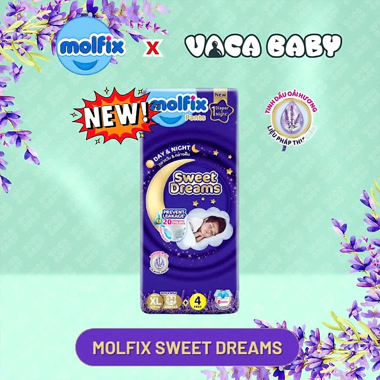 (New) Tã bỉm QUẦN Molfix Sweet Dream siêu cao cấp với tinh dầu oải hương lavender cho bé size M/L/XL/XXL
