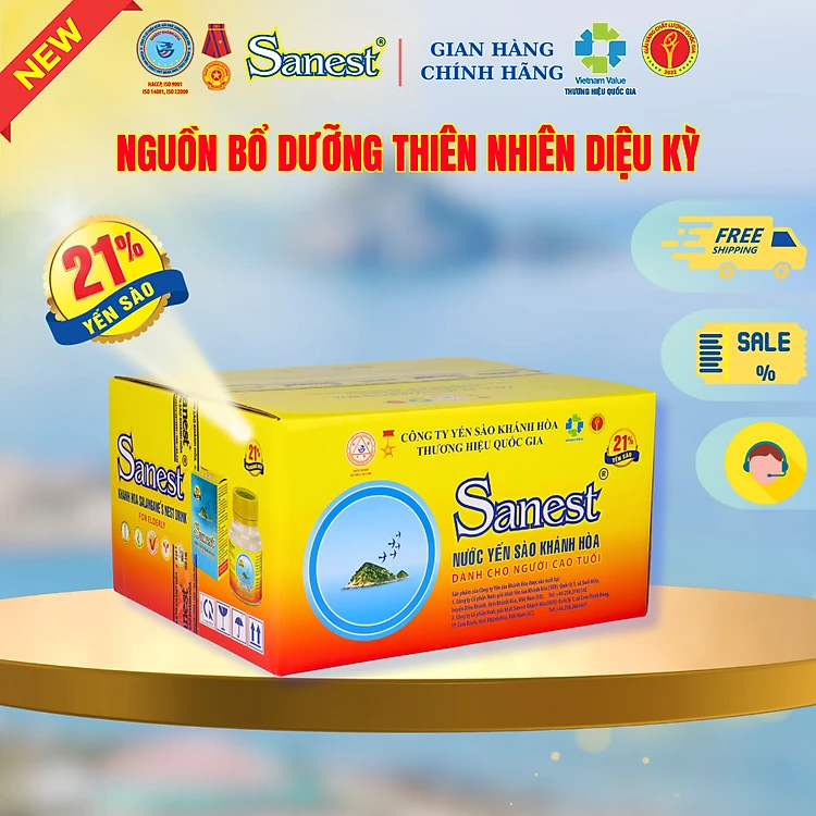 NEW [ Thùng 60 lọ] Nước Yến sào Khánh Hòa Sanest 21% - Dành cho Người Cao Tuổi - Có đường