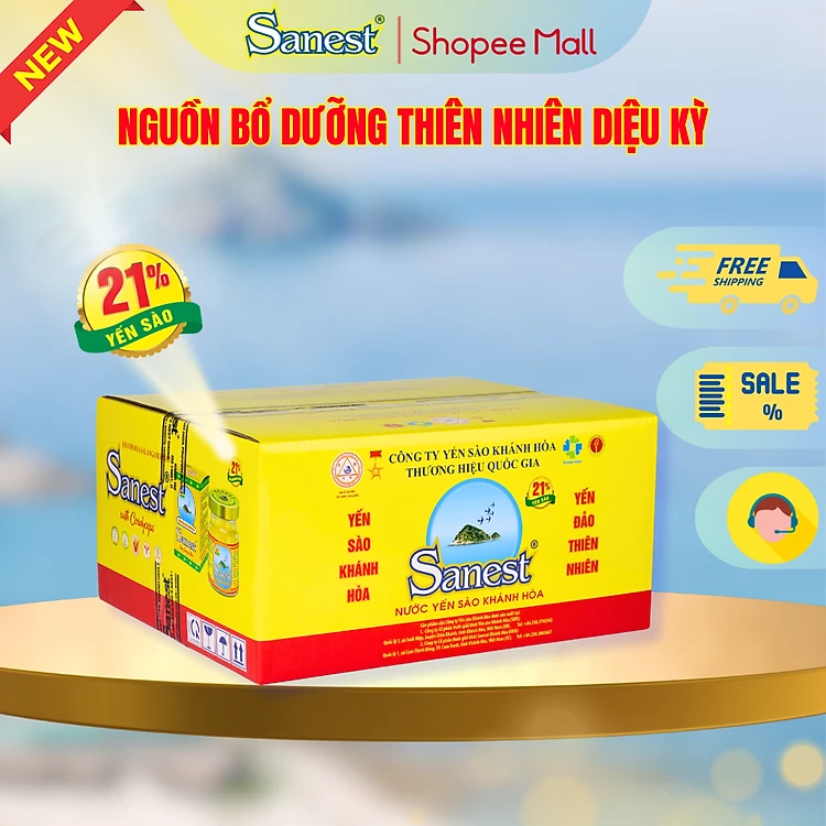NEW [ Thùng 60 lọ] Nước Yến sào Khánh Hòa Sanest 21% - Đông Trùng Hạ Thảo
