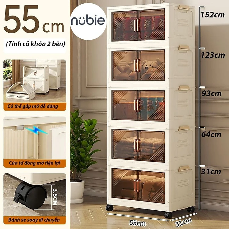 (Ngang 45-75cm) Tủ Nhựa Gấp Gọn Size Lớn, Tủ Đựng Quần Áo Đa Năng Lắp Ghép, Để Đồ Tiện Dụng, Nhựa PP, Có Bánh Xe