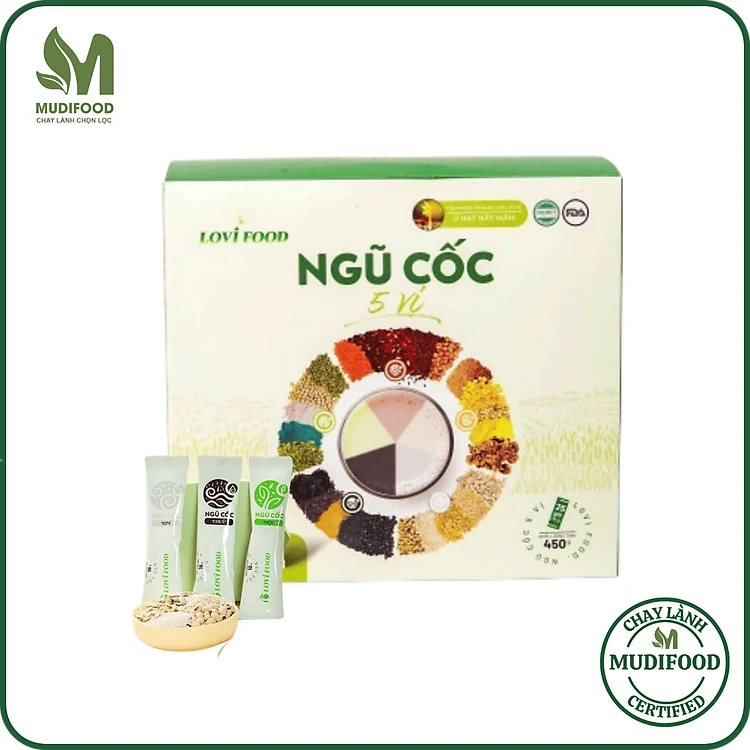 Ngũ Cốc 5 Vị LoviFood Hộp 480g (25 gói x 18g) - Thực Phẩm Bổ Sung Dinh Dưỡng Cho Mẹ Bầu, Sau Sinh, Người Già, Người Tiểu Đường, Ăn Chay, Ăn Kiêng, Eat Clean, Healthy, Tốt Cho Tim Mạch, Giúp Ngủ Ngon Hơn