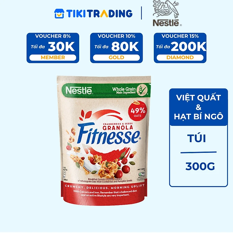Ngũ cốc ăn sáng Fitnesse Granola Nam Việt Quất & Hạt Bí Ngô (gói 300g)
