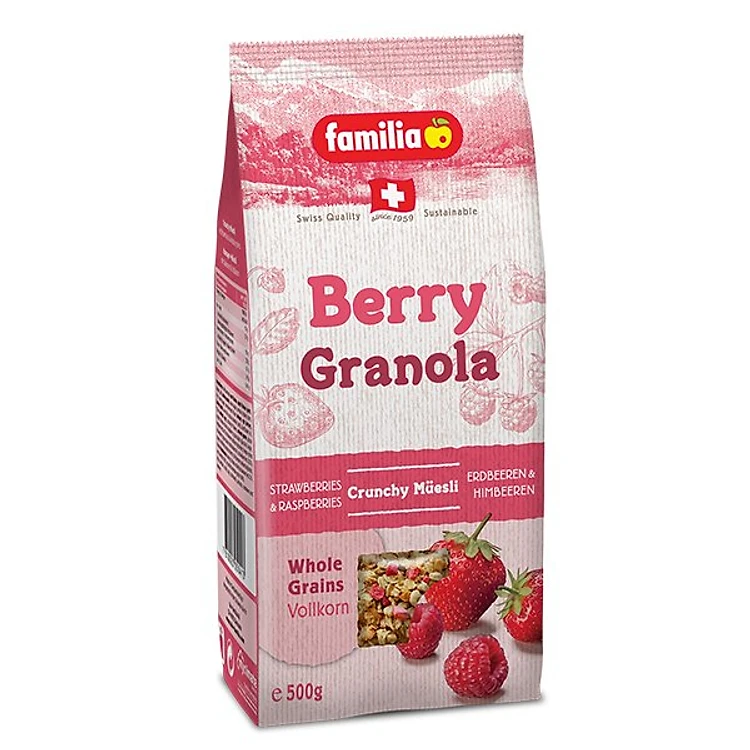 - Ngũ Cốc Giòn Vị Dâu Berry Crunch Familia (500g) là thực phẩm bổ sung dinh dưỡng bao gồm các loại vitamin, protein, chất béo, khoáng chất, năng lượng được cân chỉnh phù hợp với nhu cầu dinh dưỡng hàng ngày cho người sử dụng.