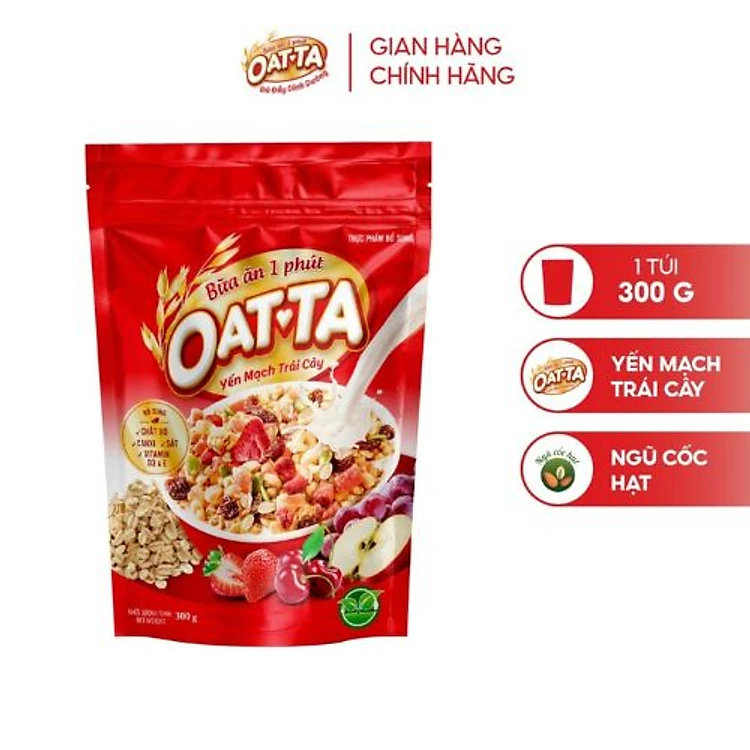 Ngũ cốc Yến mạch trái cây Oatta nguyên chất tốt cho người ăn kiêng túi 300gam