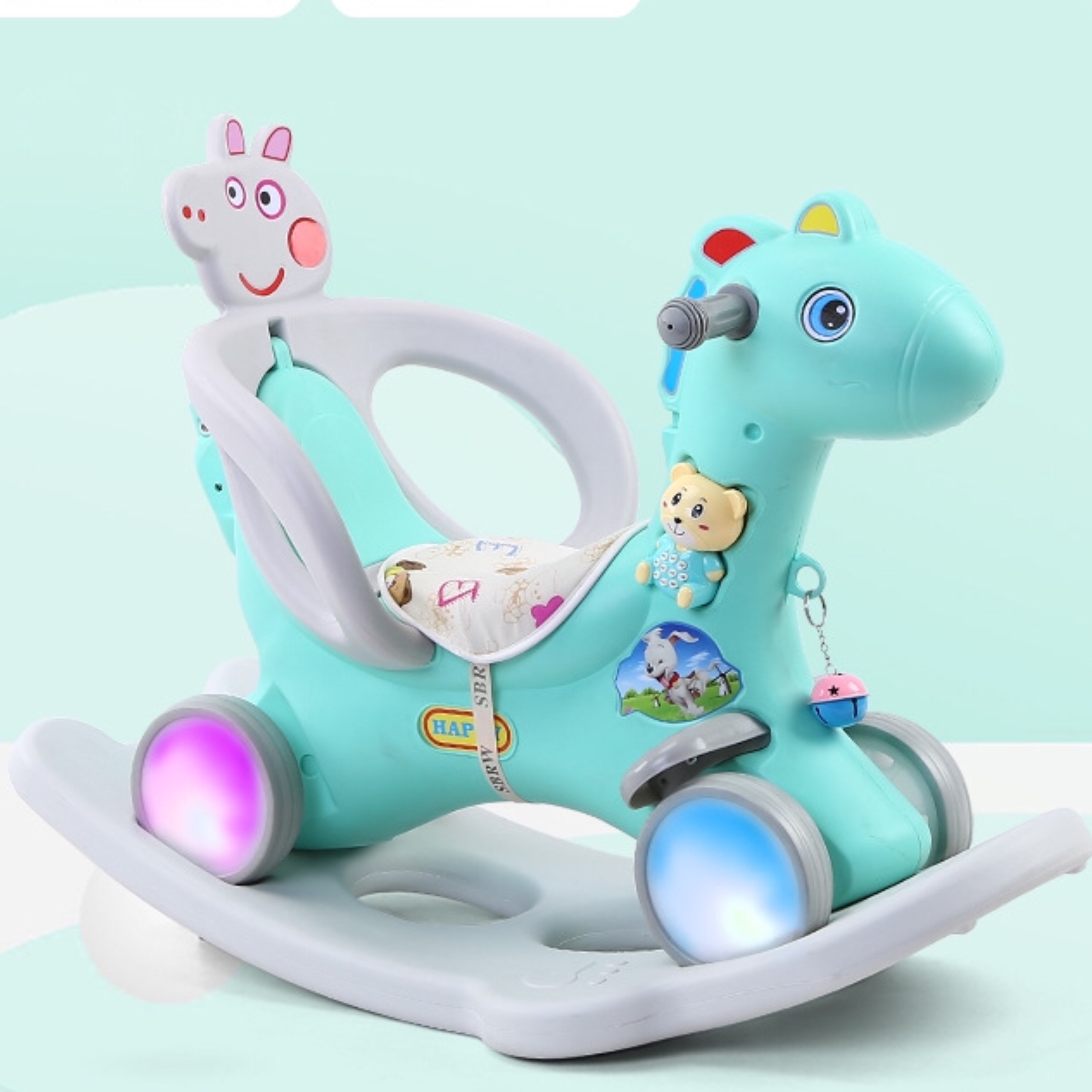 + Ngựa bập bênh 9006 có đai bên cạnh giúp các bé sử dụng an toàn hơn
