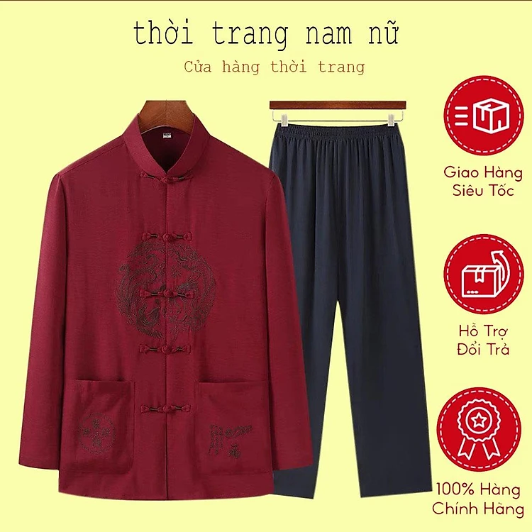 Người trung niên và cao tuổi Phù hợp với nam giới dài tay bộ đồ giản dị của Phong cách Quốc ông nội quần áo