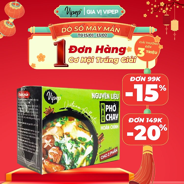 Nguyên Liệu Nấu Phở Chay Hoàn Chỉnh Vipep 185G