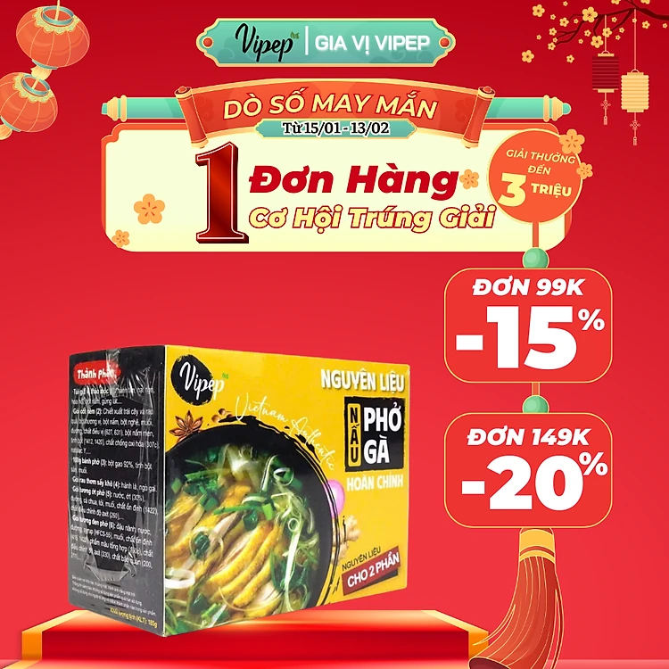 Nguyên Liệu Nấu Phở Gà Hoàn Chỉnh Vipep 185G