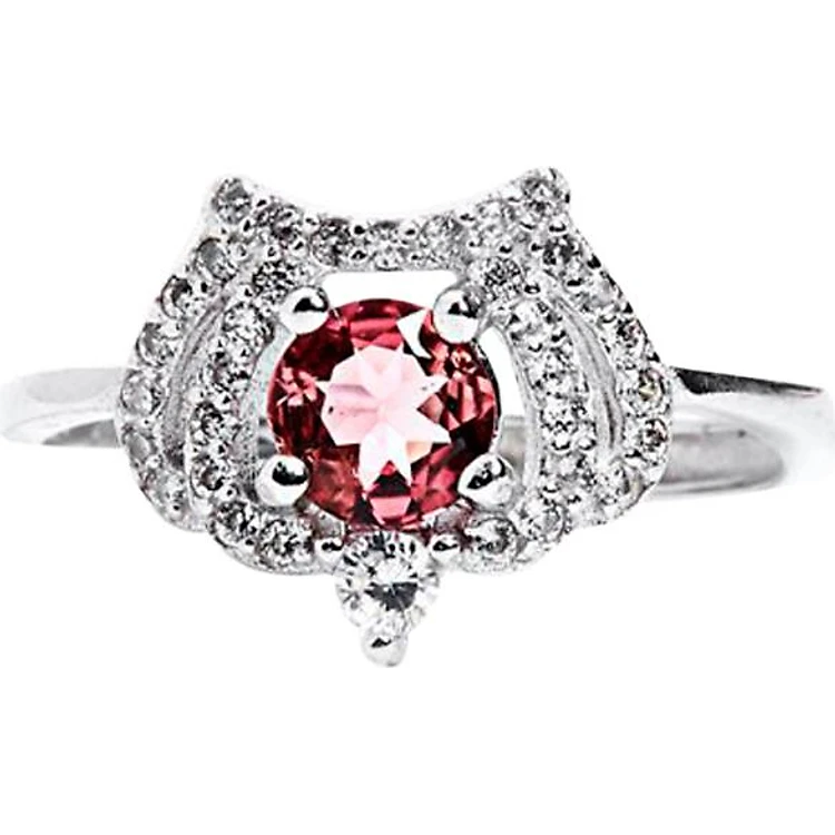 Nhẫn Bạc Vương Miệng Mặt Đá Tourmaline Hồng Ngọc Quý Gemstones N1