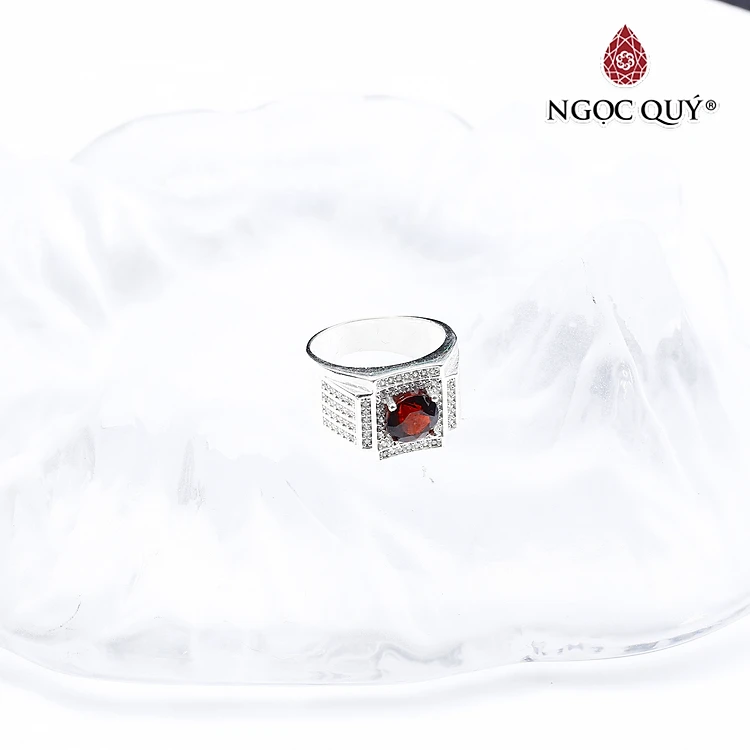 Nhẫn bạc nam mặt đá garnet 20mm mệnh hỏa, thổ - Ngọc Quý Gemstones