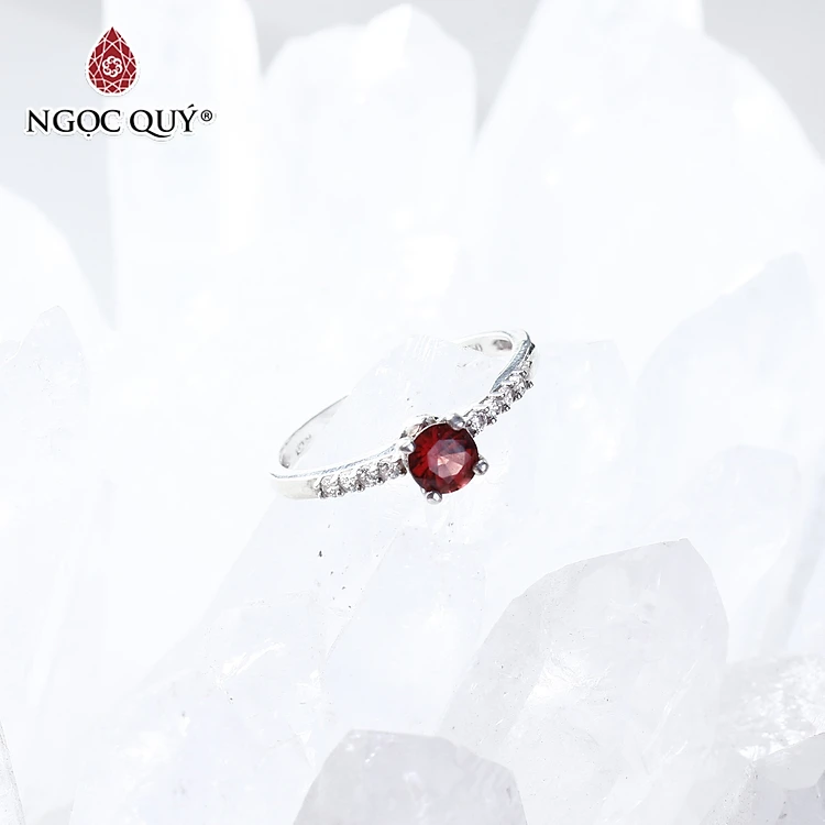 Nhẫn bạc nữ đá Garnet mệnh hỏa, thổ - Ngọc Quý Gemstones