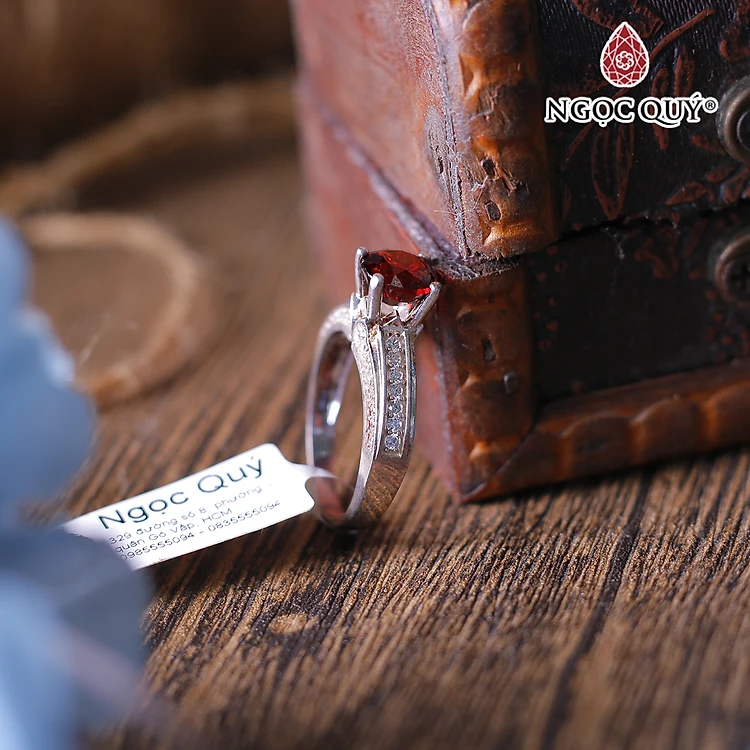 Nhẫn bạc nữ đá garnet ngọc hồng lựu đường kính 18 mm mệnh hỏa. thổ - Ngọc Quý Gemstones