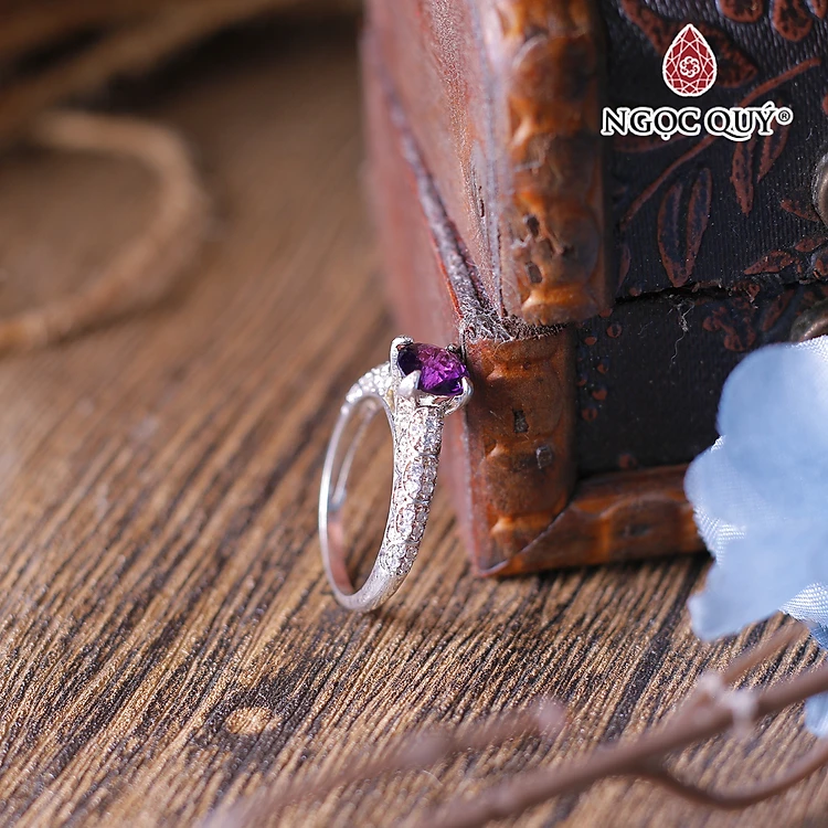 Nhẫn bạc nữ đá thạch anh tím đường kính 17 mm mệnh hỏa. thổ - Ngọc Quý Gemstones