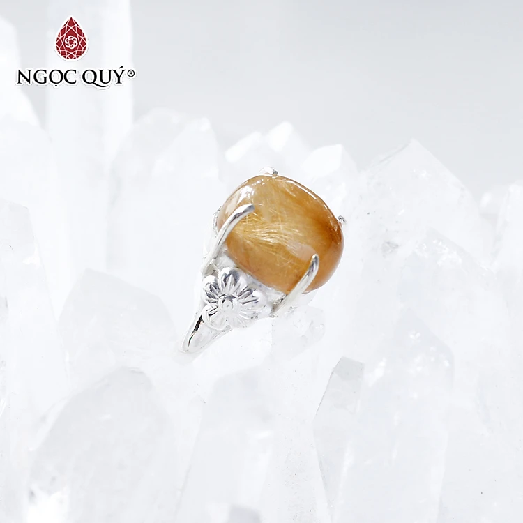 Nhẫn bạc nữ đá thạch anh tóc vàng mệnh thủy, kim - Ngọc Quý gemstones