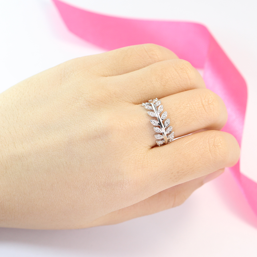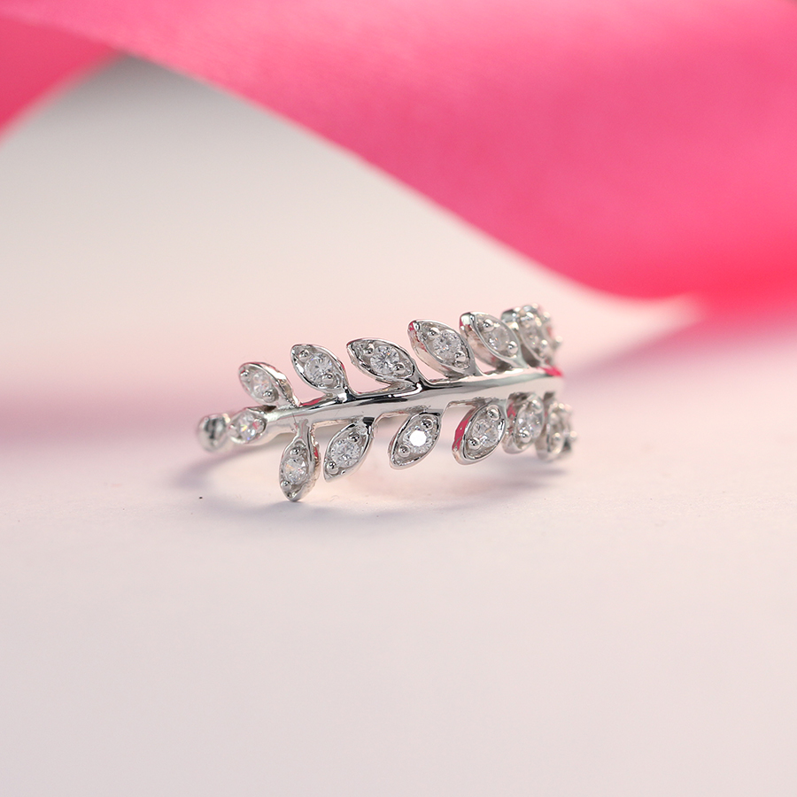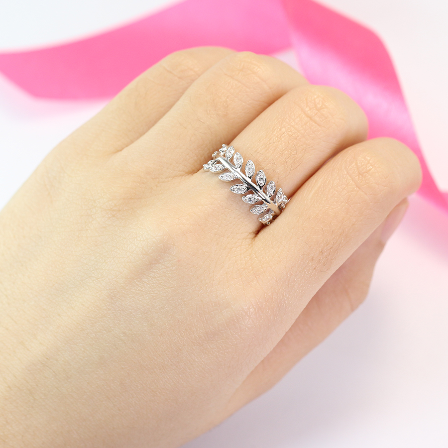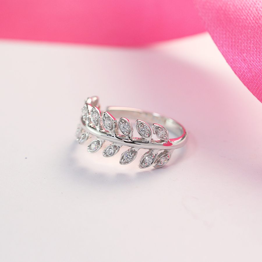 Hình ảnh chi tiết nhẫn bạc nữ hình lá nguyệt quế đính đá sang trọng NN0199