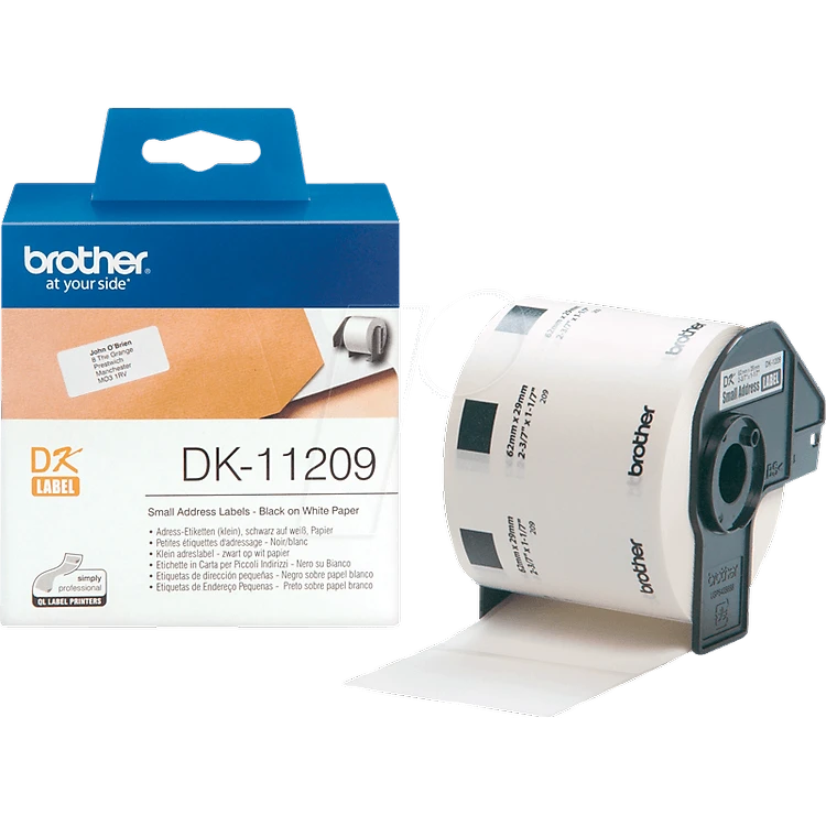 Brother DK-11209 là loại nhãn in chất lượng được sản xuất bởi thương hiệu Brother cho khả năng ứng dụng đa dạng trong nhiều môi trường từ trong gia đình đến tại các văn phòng, dùng để in nhãn biểu trưng, nhãn mã vạch, nhãn đánh dấu, nhãn cho tài liệu, hồ sơ,