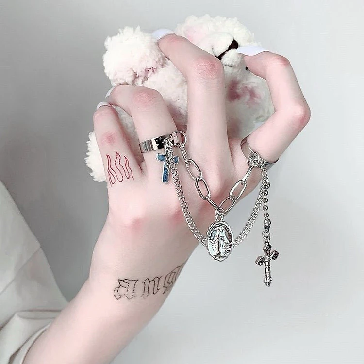 Nhẫn chuỗi xích titan nam nữ nhẫn đôi nhiều hoạ tiết punk rock