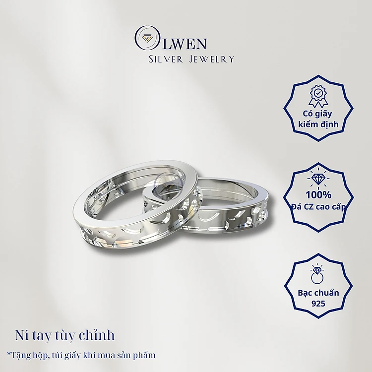 Nhẫn Đôi Bạc 925 Olwen Đính Đá Cao Cấp