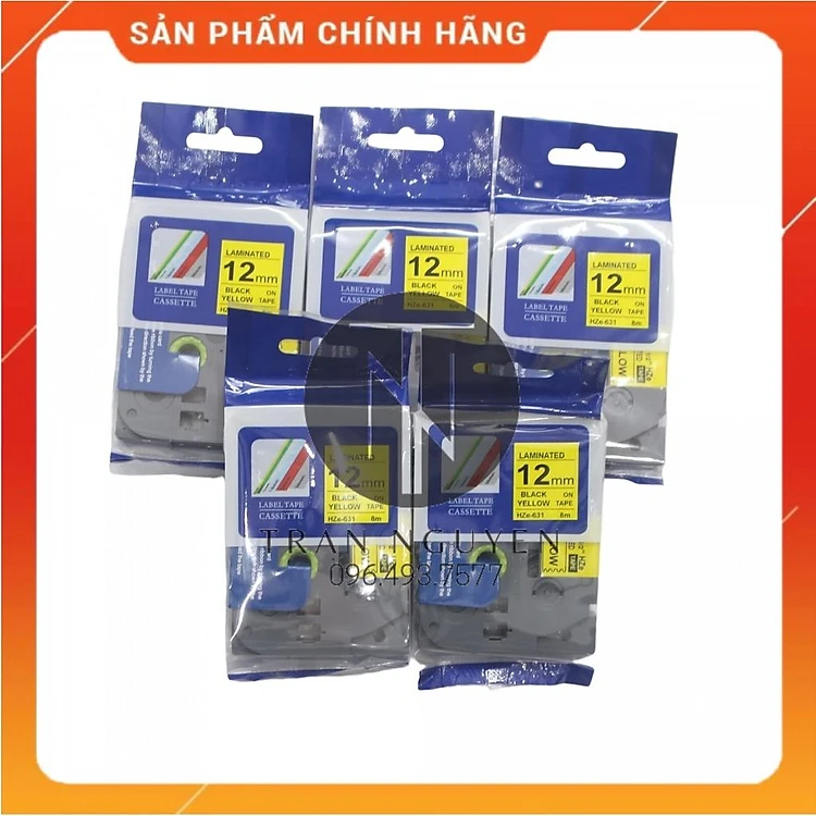 [Combo 5 hộp] Nhãn In Brother HZe-631 - Đen nền vàng 12mm x 8m - Hàng nhập khẩu